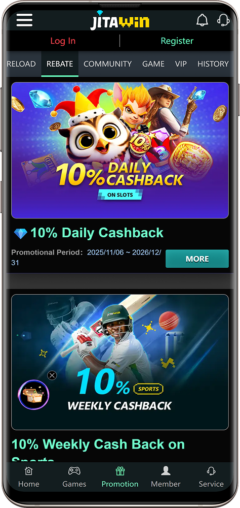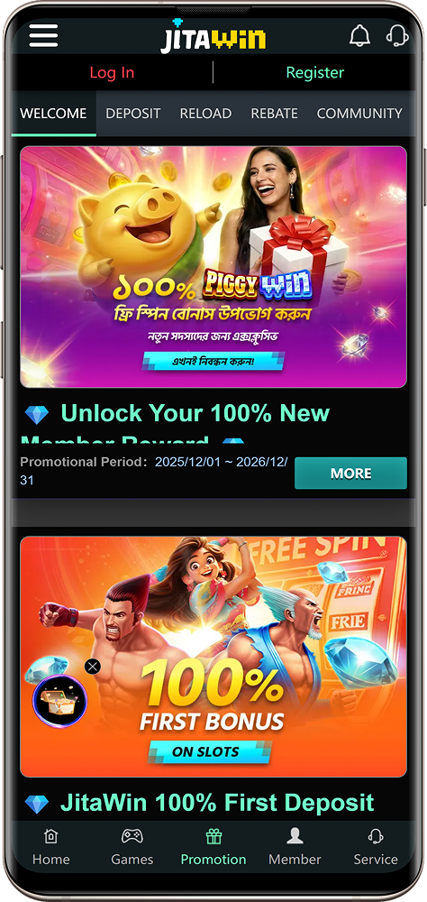 In the casino section of the mobile app, there are more than 5,000 slots from various providers. Players can also try fishing, crash, bingo, and live games. Download the JitaWin app now, activate your welcome bonus, and play on the go.