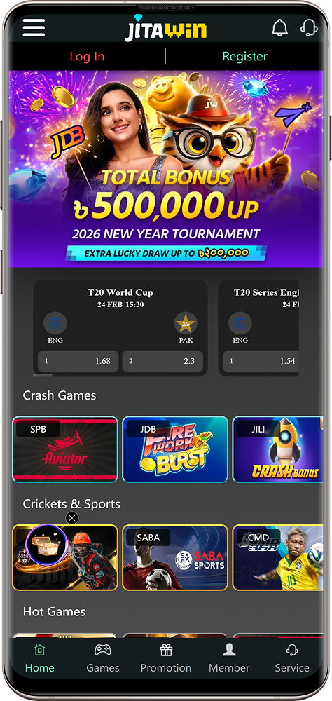 JitaWin app is an online mobile software for betting and gambling, which can be easily accessed by Bangladeshi players. It offers a wide range of services on the go, which have been crafted based on the culture and interests of local users. For example, the Sports category includes the major cricket and kabaddi leagues, as well as different championships in football, tennis, and table tennis. Live betting allows bettors to bet in real time. The app supports BDT and the Bengali language.